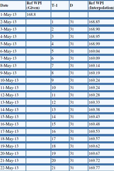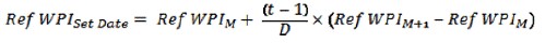 [Ref WPIM = Ref WPI for the first day of the calendar month in which Date falls, Ref WPIM+1 = Ref WPI for the